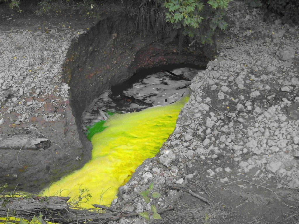Traçage de la perte dans laquelle la Risle se perd totalement dans le sous-sol (cliché J. Rodet)